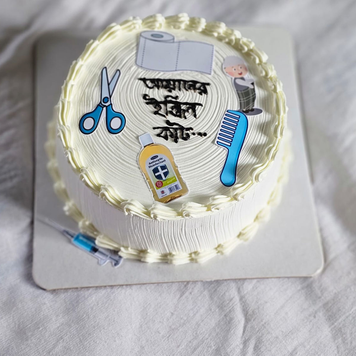 This custom cake is a humorous and culturally specific celebration of Sunnate Khatna (circumcision), a traditional milestone for young boys in Bangladesh.